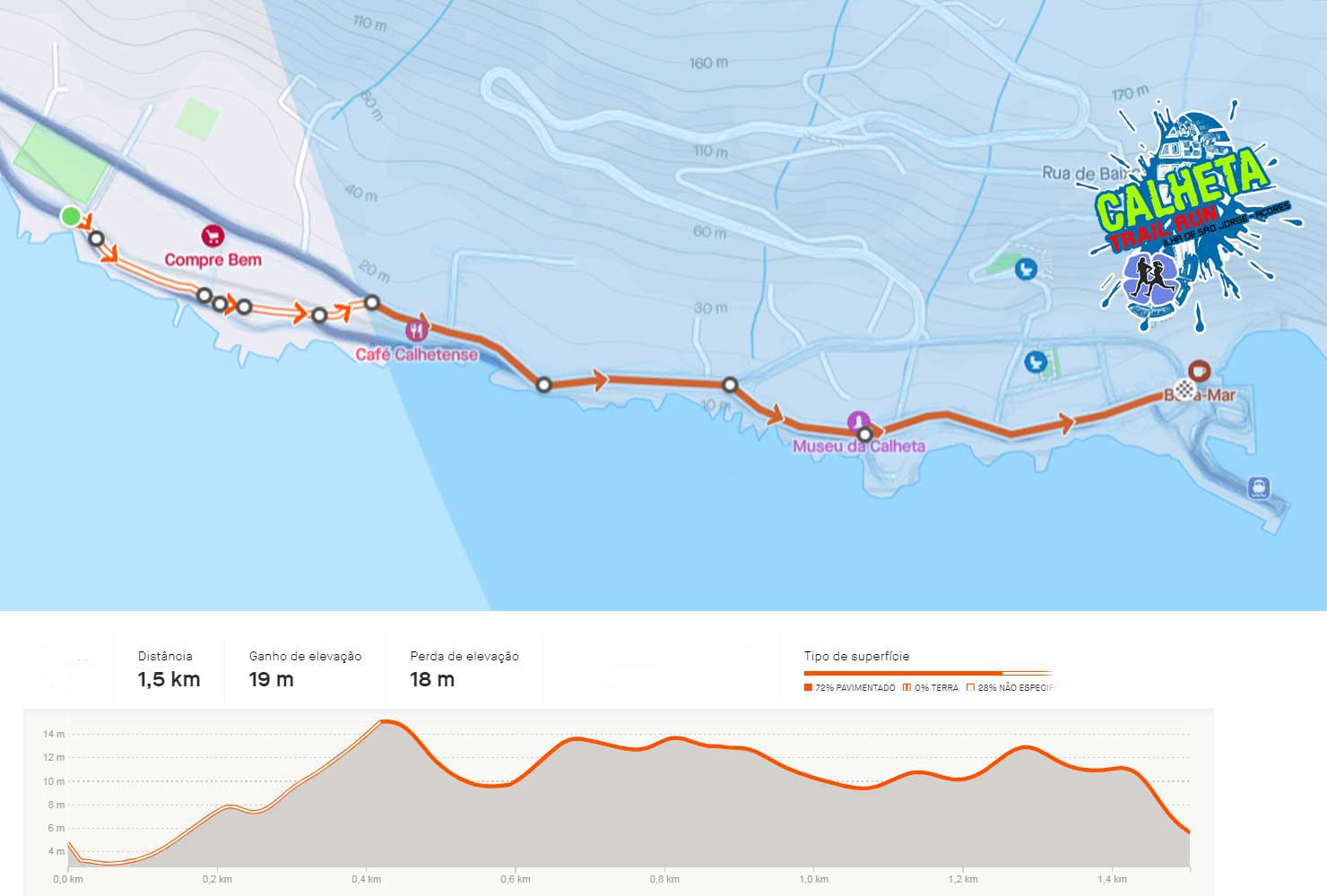 O "TRAIL KIDS" tem uma extensão de 1.5 Km. O percurso é realizado em terreno misto de alcatrão, terra batida. Terá início junto ao campo de Futebol da Vila de Calheta e termina no cais da Vila de Calheta.