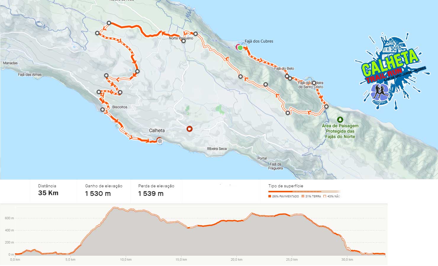 O "TRAIL LONGO" tem uma extensão de 35 Km e consiste na travessia transversall da Ilha de São Jorge - Açores. O percurso é realizado em terreno misto de alcatrão, terra batida e por trilhos pedestres. Terá início na Fajã dos Cubres, na parte Norte da ilha e com final na Vila da Calheta a Sul da Ilha de São Jorge - Açores.